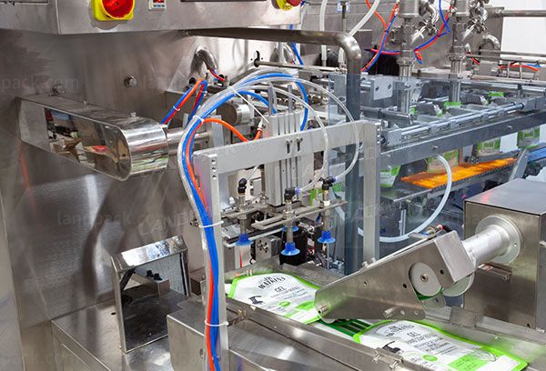 2. Two filling nozzles work simultaneously, allowing the total target filling volume to be reached. The individual filling volumes can be adjusted independently, shortening the filling time and increasing packaging speed.