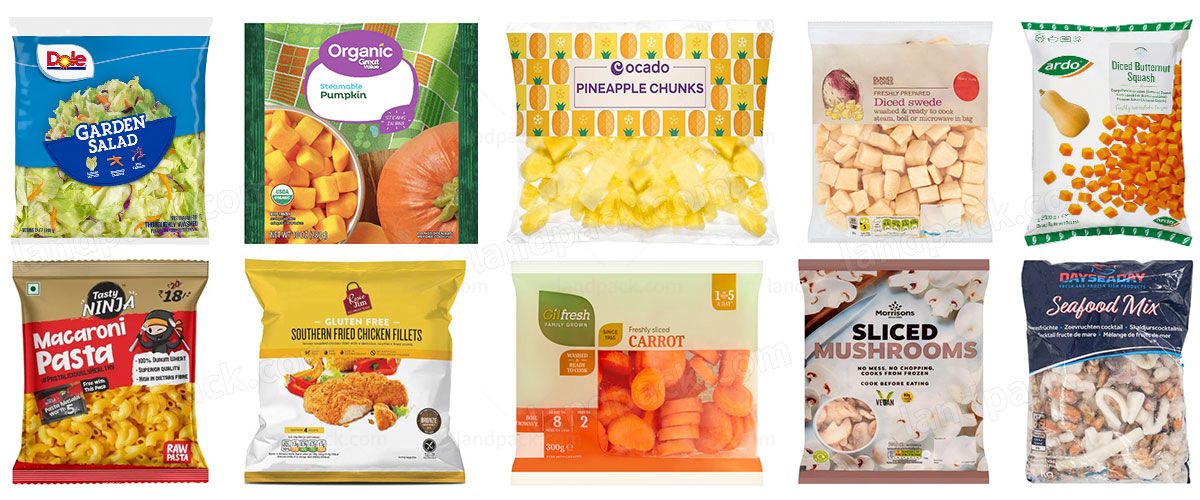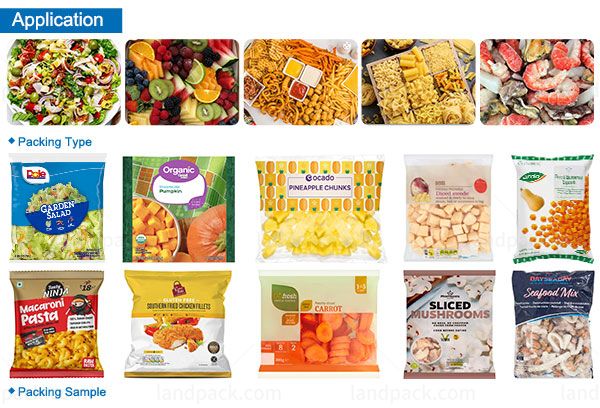 This machine is perfectly designed for precise weighing and packaging of fresh sliced vegetables and fruits, including salads, apples, lettuce, cucumbers, corn, onions, watercress, asparagus, lemons, peppers, leafy greens, and chinese cabbage. It ensures maximum freshness and quality, making it an excellent solution for packaging fresh produce.
