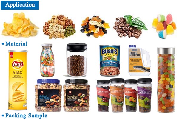 Automatic granule weighing filling machine (LF-GC-008A), It is suitable for filling granular products such as nuts, popcorn, potato chips, puffed food, peanuts, beans, capsules, tablets ect.