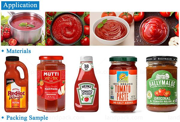 Automatic bottle ketchup filling machine from Landpack can fill up to 16 containers at the same time with virtually any liquid product, from thin and foamy to thick and stringy. It is recommended for a wide variety of products including ketchup, tomato sauce, mayonnaise, jam, paste, oil, yogurt, cream, hot sauce, chili sauce, honey, etc.