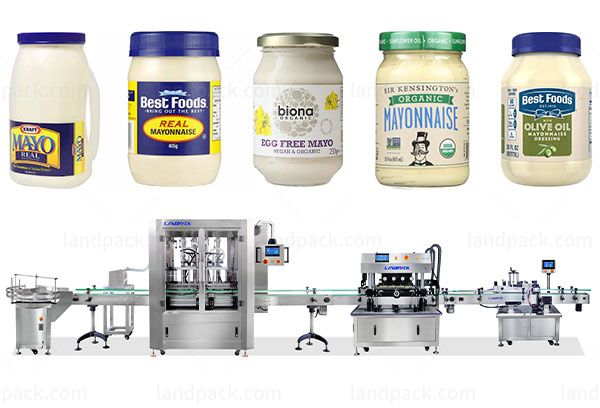 Automatic bottle mayonnaise filling machine from Landpack can fill up to 16 containers at the same time with virtually any liquid product, from thin and foamy to thick and stringy. It is recommended for a wide variety of products including mayonnaise, ketchup, oil, yogurt, cream, tomato sauce, hot sauce, chili sauce, honey, etc.