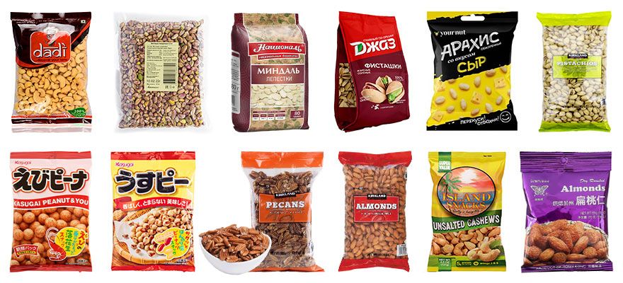 Nut, cashwe, candy, sunflower seeds, sugar, salt, pet food, potato chips, popcorn, almond, dry fruit, vegetable salad, instant oatmeal / cereal oats, screw, etc.