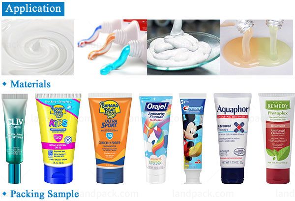 Cosmetic paste liquid plastic tube filling and sealing machine(LD-TS100), It can perform the filling for ointment, viscosity material, sealing batch number embossing (include manufacture date) automatically.