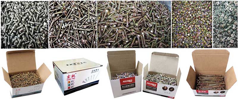 Application: It has a wide range of applications and is used in boxing and packaging of fasteners, hardware, auto parts and other industries. such as screw, nail, bolt, pin, button etc.